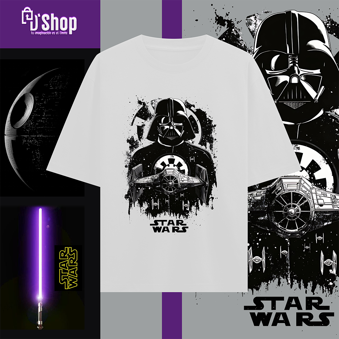 Sumérgete en la galaxia muy, muy lejana con esta impresionante camiseta, un homenaje imprescindible para todo fan de la saga Star Wars. Diseñada para capturar la esencia del lado oscuro, esta prenda es mucho más que ropa; es una declaración de lealtad a uno de los villanos más icónicos de la historia del cine.