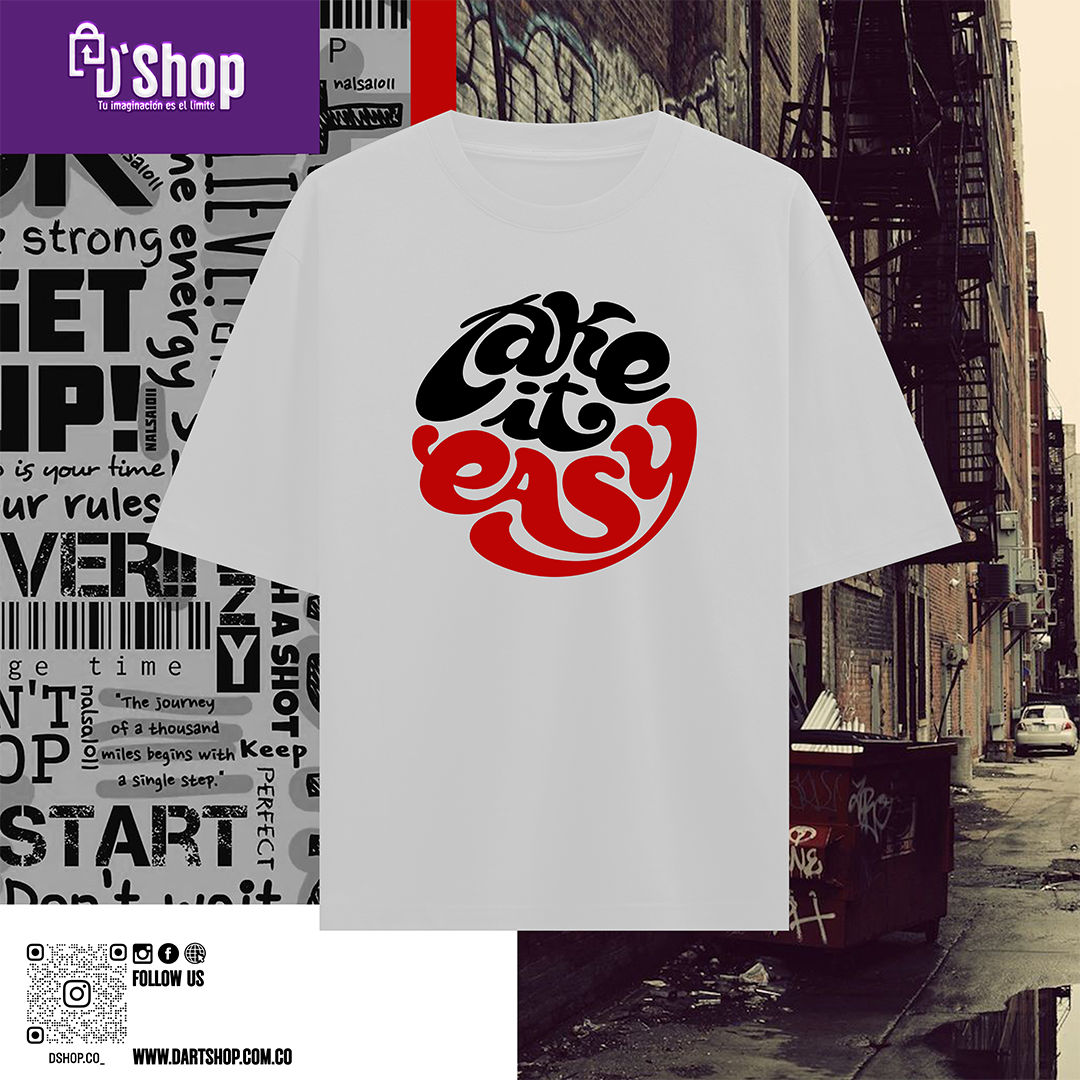 TAKE IT EASY, una prenda que combina estilo urbano con un mensaje inspirador. Diseñada para aquellos que buscan expresar su individualidad y adoptar una filosofía de vida relajada, esta camiseta se convertirá en un básico indispensable en tu guardarropa.